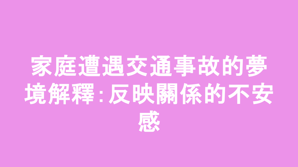 標籤:夢境解釋, 家庭關係, 交通事故夢, 潛意識, 情感分析, 夢境意義, 文化解釋, 心理學, 家庭溝通, 夢境日記