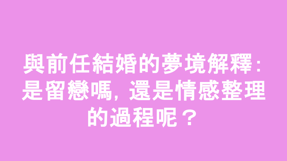 標籤:夢境解析, 前任戀人, 情感整理, 夢的意義, 文化意義, 情感反思, 個人經歷, 常見夢境, 心理學, 婚姻夢境