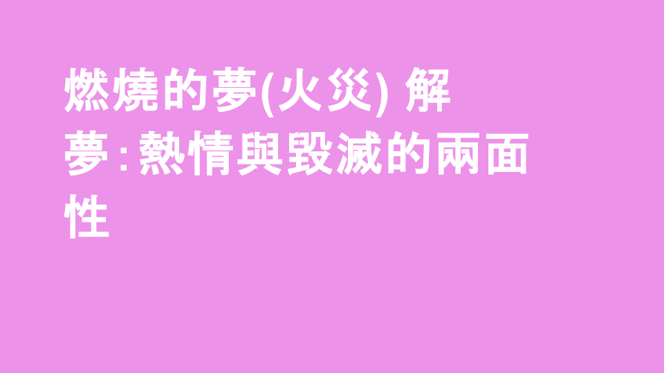 標籤: 燃燒的夢, 解夢, 夢境分析, 火災, 文化意義, 自我成長, 情感, 象徵意義, 夢日記, 心理學